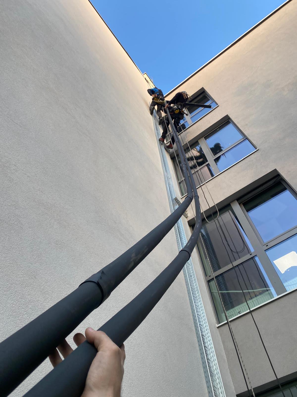Az előre forrasztott rézcsövezés függesztése és köteles mozgatása, rögzítése ipari alpin technikával, korántsem tartozik a legegyszerűbbek közé.
